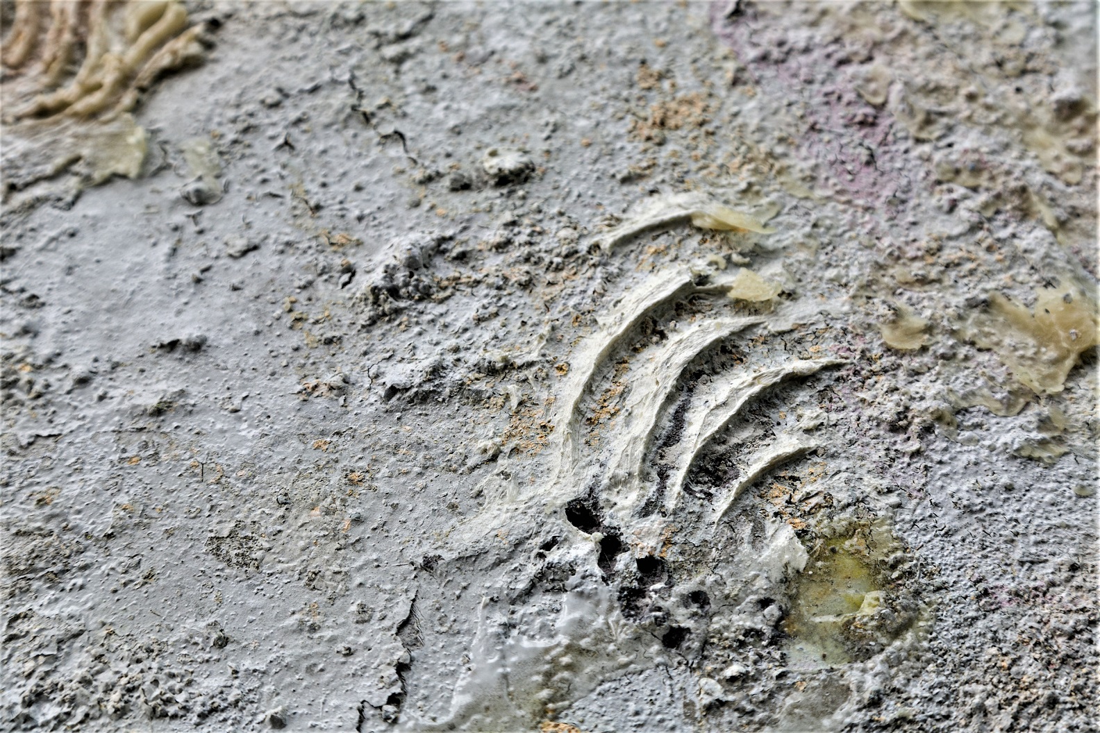 Clay, concrete, beeswax, plaster, utility paint, drywall compound, pouring medium, oil, acrylic, aerosol, gamvar, damar.